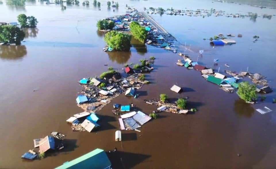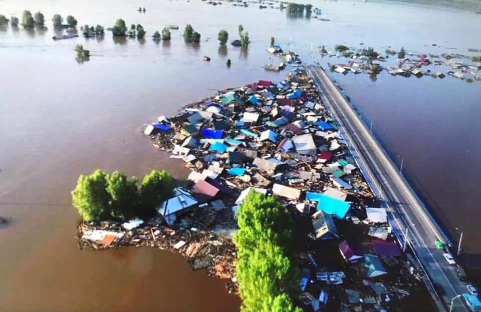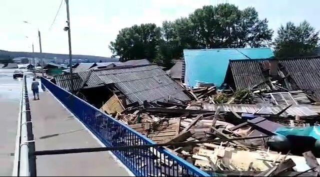 Уровень воды в реке Ия сейчас превышает 10 метров при критической отметке 7 метров. Вышедшая из берегов река снесла дома жителей Тулуна. В итоге постройки скопились около федеральной трассы "Сибирь", участок которой возвышается над водой.