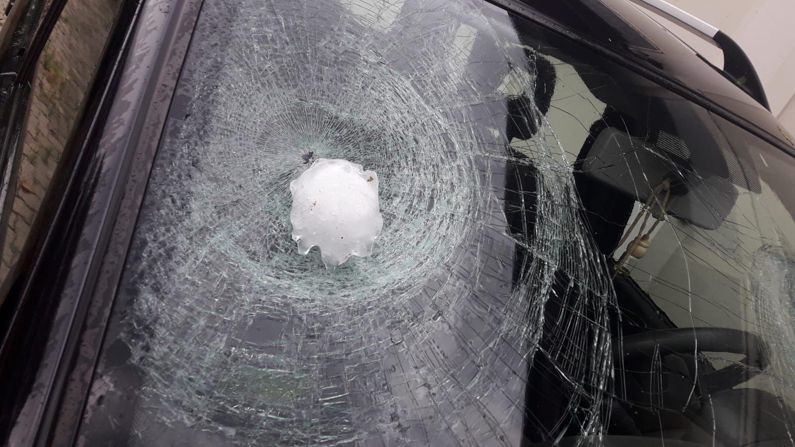 Many people injured, the city is in state of emergency. Here is the glass of my car, broken by these ice bullets...as well as the roof of the university. I could never imagine something like this can happen, surely not here in #Pescara #Italy #ClimateCrisis #ClimateEmergency pic.twitter.com/uKQHQegesa
