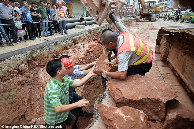 В китайской провинции Гуандун в городе Хэюань 10-летний мальчик, играя на улице, случайно обнаружил на набережной гнездо с окаменевшими яйцами динозавра.