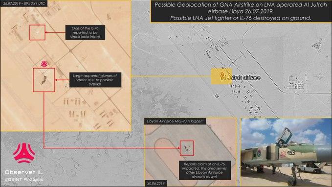 В Ливии в результате ракетного удара сил правительства национального согласия по аэропорту Аль-Джуфра, который контролируют силы Ливийской национальной армии Халифа Хафтара, уничтожен самолет Ил-76. Некоторые данные свидетельствуют об уничтожении двух бортов.