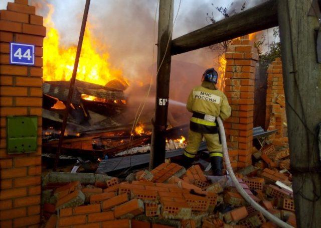 В частном жилом доме в России взорвался газ. Строение разрушилось и сгорело полностью, 2 человека погибли.