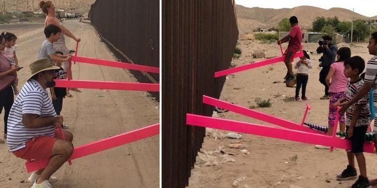 SUNLAND PARK, N. M. - художественная инсталляция Калифорнийского архитектора превращает стену на границе США и Мексики в детскую площадку.
