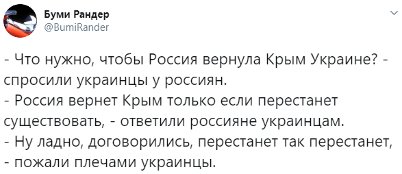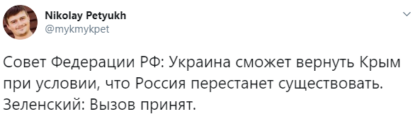 "Крым может вернуться в состав Украины только при одном условии: если Россия перестанет существовать", - заявил он.