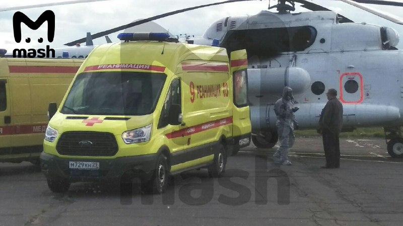 Также сообщается, что люди в костюмах радиационной защиты измеряли фон вертолета. Когда убедились, что коптер не излучает и все в норме - приступили к выгрузке раненных.