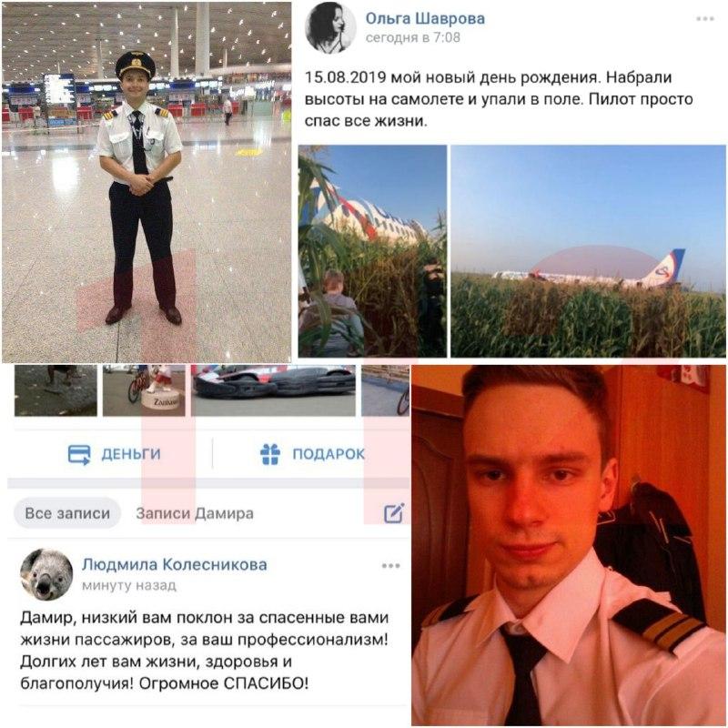 Спасенные пассажиры благодарят командира экипажа Дамира Юсупова и второго пилота Георгия Мурзина, передает Час Пик.