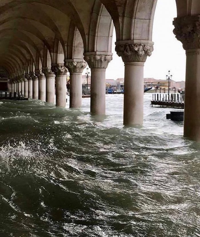 В середине этой недели уровень воды в Венеции поднялся до 187 см - это рекорд в 1966 года. Затопило 80% территории города, включая любимую туристами площадь Сан-Марко. В периоды сильного подъема воды ее закрывают для посещения.