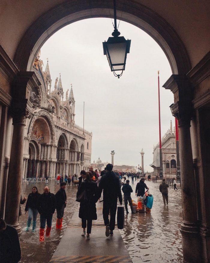 Тем не мнее, даже во время потопа в Венеции есть туристы. Они надевают высокие резиновые сапоги и гуляют по залитым водой улицам.