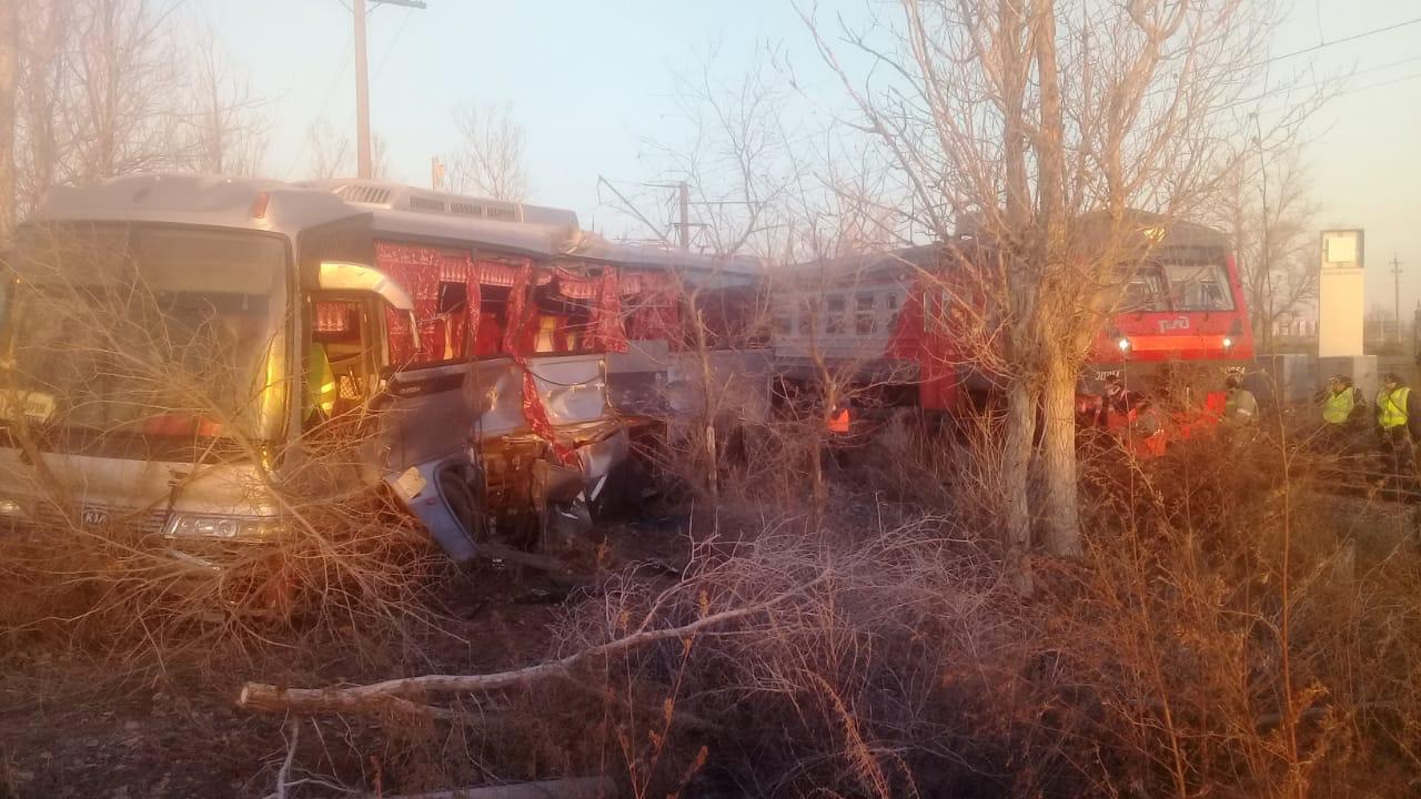 Столкновение электрички с автобусом Kia ООО "Газпром-энерго" произошло утром 27 ноября. В автобусе ехало 25 рабочих Астраханского газоперерабатывающего завода. В поезде на момент столкновения находилось 650 пассажиров - работников того же предприятия, сообщает Час Пик со ссылкой на российские СМИ.