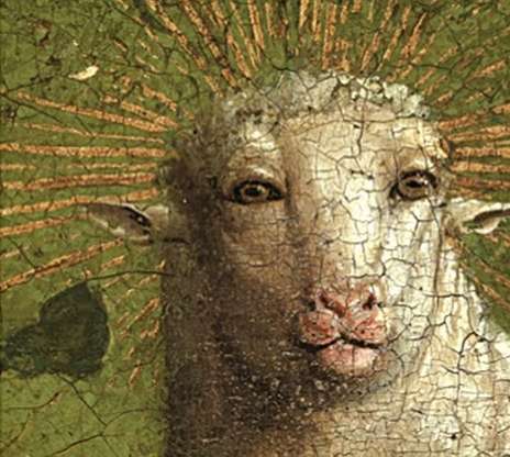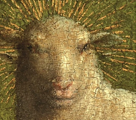 Реставраторы принялись по милиметру снимать более поздние слои красок и были ошеломлены, когда им открылось истинное изображение Агнца. Теперь ягненок, символизирующий Христа, смотрит глазами, похожими на человеческие. И в целом его голова обрела более гуманоидные черты.
