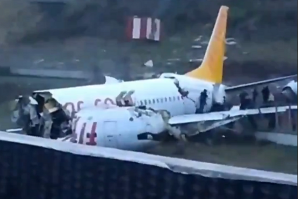 В турецком Стамбуле в аэропорту Сабихи Гекчен пассажирский самолет при посадке выкатился за пределы взлетно-посадочной полосы и скатился в овраг.