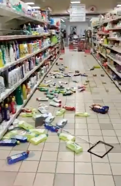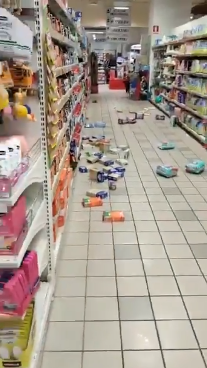 Данных о жертвах или пострадавших пока нет. Местные жители выложили в сеть кадры последствий сейсмических толчков: в местных супермаркетах товары попадали с полок.