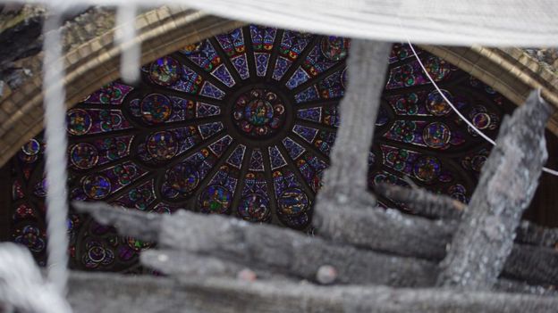 При пожаре расплавилось большое количество свинца, который осел пылью на витражах. Специалист по витражам Клодин Луазель рассказала, что некоторые окна не чистились на протяжении веков, и грязь зищитила их от свинцового осадка. Теперь нужно просто убрать все эти отложения.