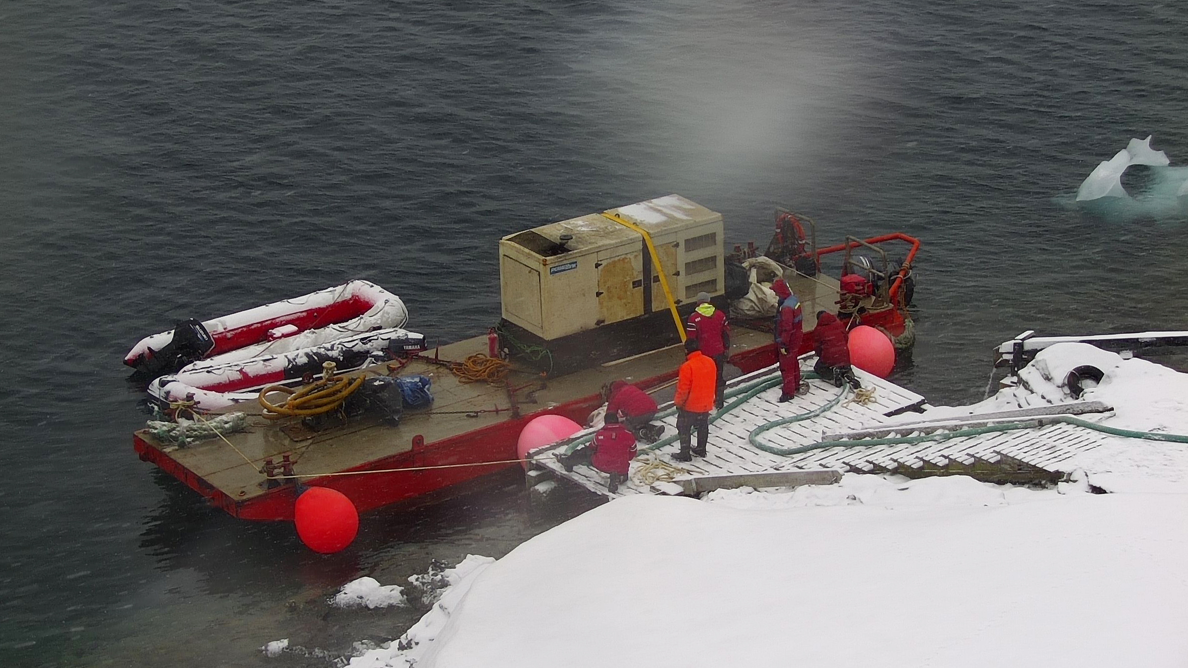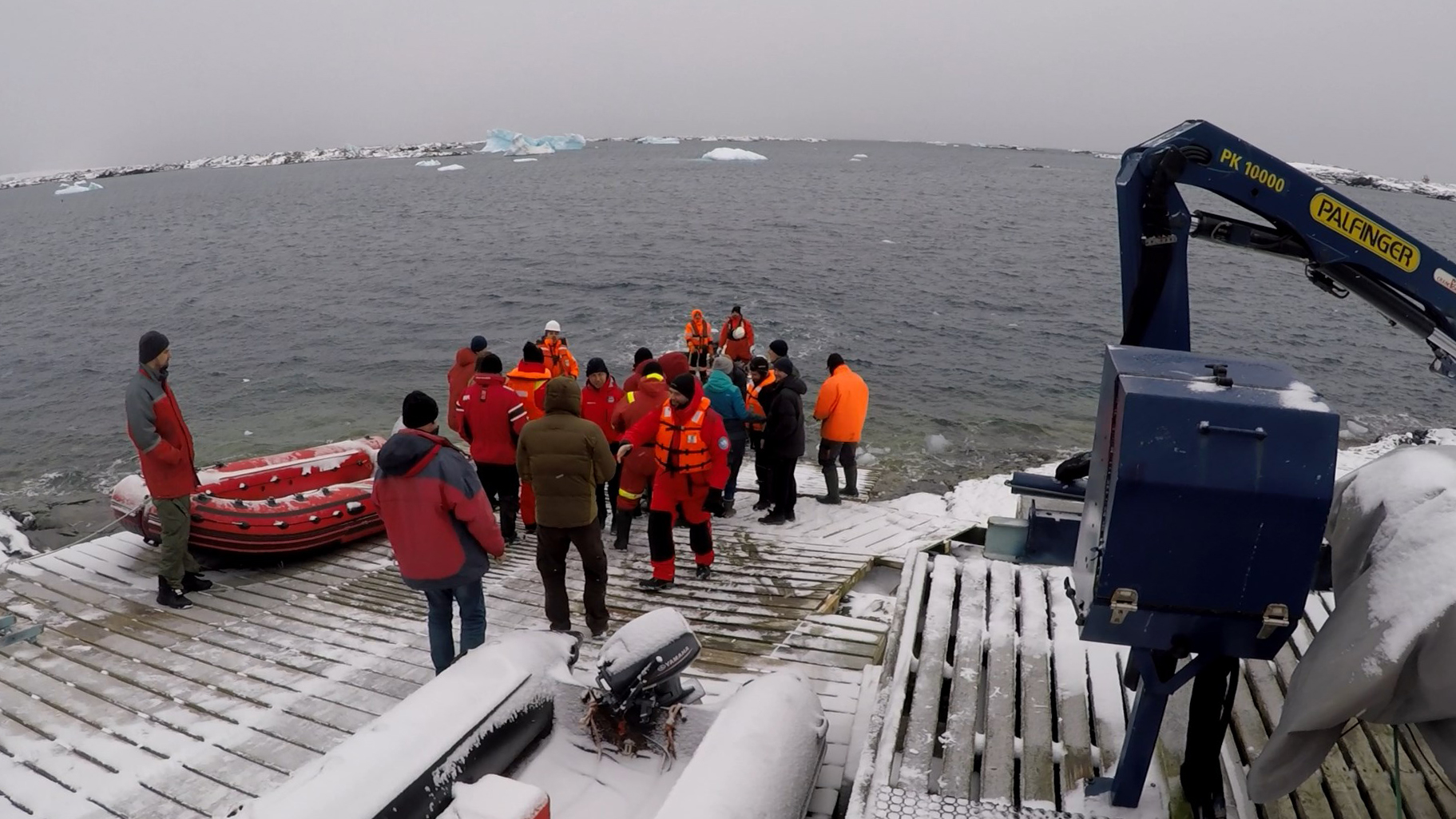 Сейчас на станции сложные погодные условия: очень ветрено и снежно. Главной задачей полярников в течение следующих нескольких дней является разгрузка корабля. В Чили на него погрузили около 6 фур запасов продуктов, приборов и горючего. Однако, по словам самих участников экспедиции, несмотря на плохую погоду, они имеют прекрасное, праздничное настроение, с которым работать гораздо проще.