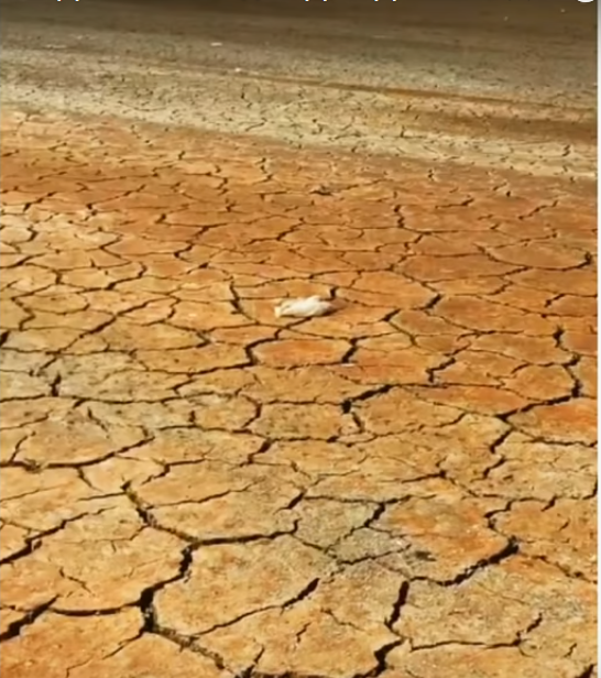 Крымчане теперь могут легко прогуляться по дну Симферопольского водохранилища, а само оно больше напоминает потрескавшуюся землю в пустыне.