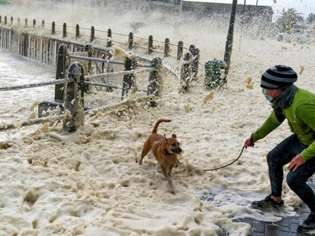 Именно разбивающиеся и колышущиеся волны нагнали столько пены на сушу.