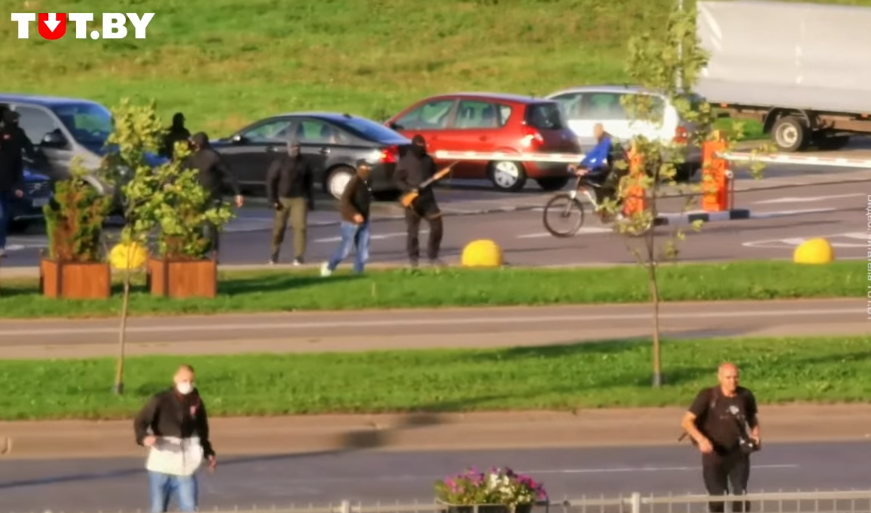 В Минске во время массовых антиправительственных акций силовик открыл огонь из ружья, а протестующие начали строить баррикады из подручных средств.
