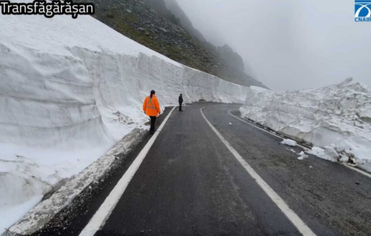 Известное Трансфэгэрашское шоссе (DN7C) в Румынских Карпатах за две недели до открытия завалило снегом. Экскаваторы круглосуточно расчищают 8-метровые завалы.