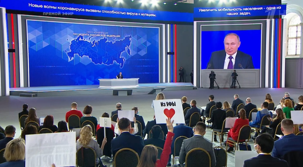 В Москве 23 декабря состоялась ежегодная большая пресс-конференция президента Российской Федерации Владимира Путина. Из-за ковидных ограничений присутствовать на пресс-конференции смогли только 507 представителей российских и зарубежных СМИ.