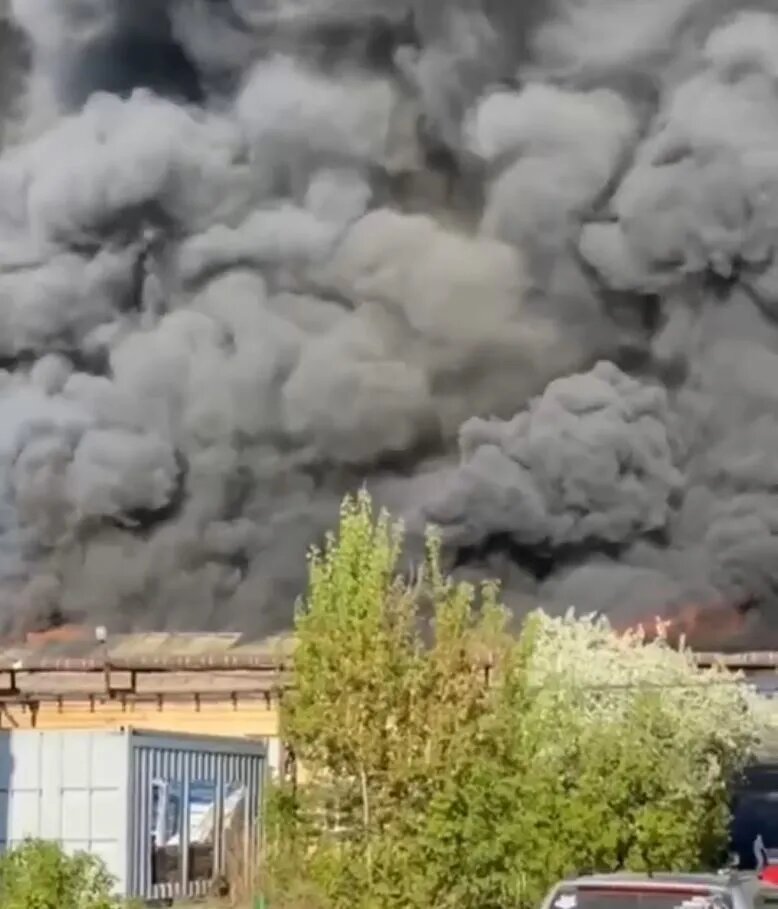 Утром 17 мая под российским городом Новосибирск произошел сильный пожар на предприятии по изготовлению упаковочных материалов. Из здания завода поднялся большой столб черного дыма.