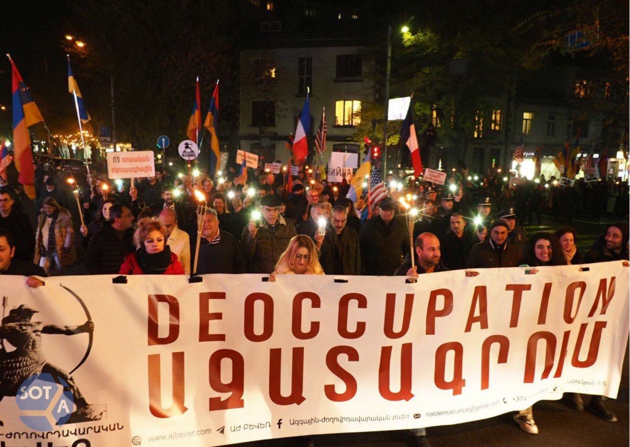 На митинге звучили лозунги "Россия - вон из Армении!", "Россия - враг!".