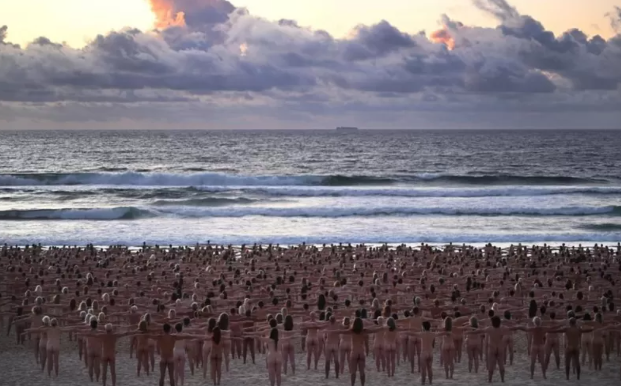 Американский фотограф Сперсер Туник провел очередную массовую фотосессию с участием обнаженных добровольцев. На этот раз он фотографировал своих моделей в лучах восходящего солнца на знаменитом пляже Бонди-бич в австралийском Сиднее.