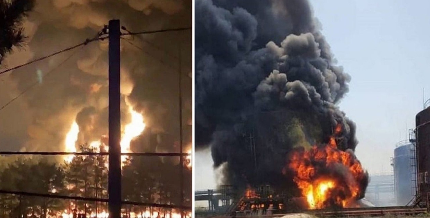По сообщению росСМИ, по предварительным данным, по резервуару попал "неустановленный боеприпас", который был сброшен с БпЛА.