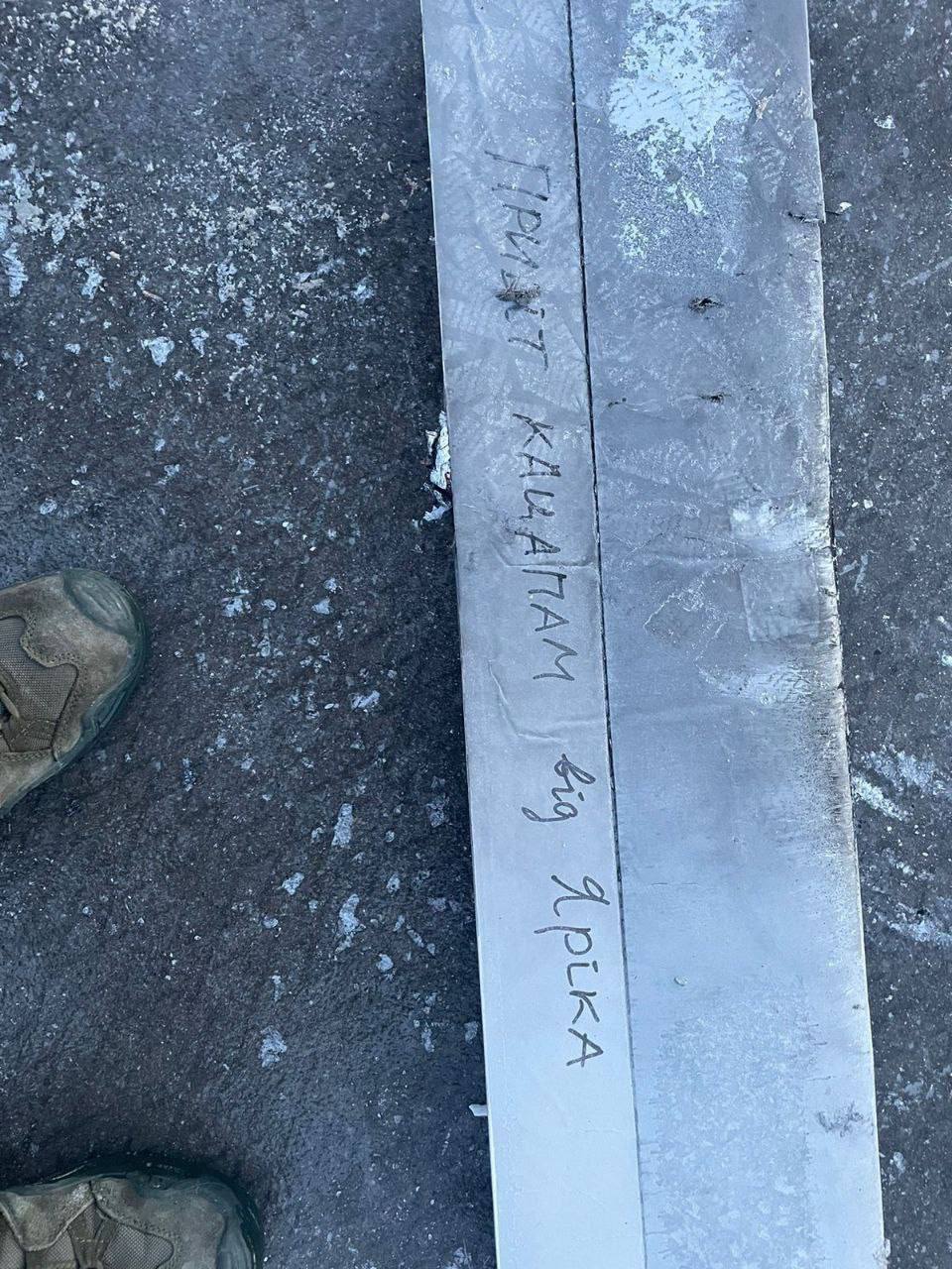 На одном из неизвестных дронов написано "привет кацапам от Ярика".