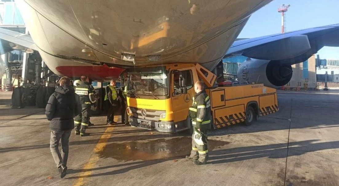 Авиалайнер Airbus A380 получил существенные повреждения. Вылет отменили. Отмечается, что никто из пассажиров не пострадал. Водителя спецтехники доставили в санитарную часть для освидетельствования.