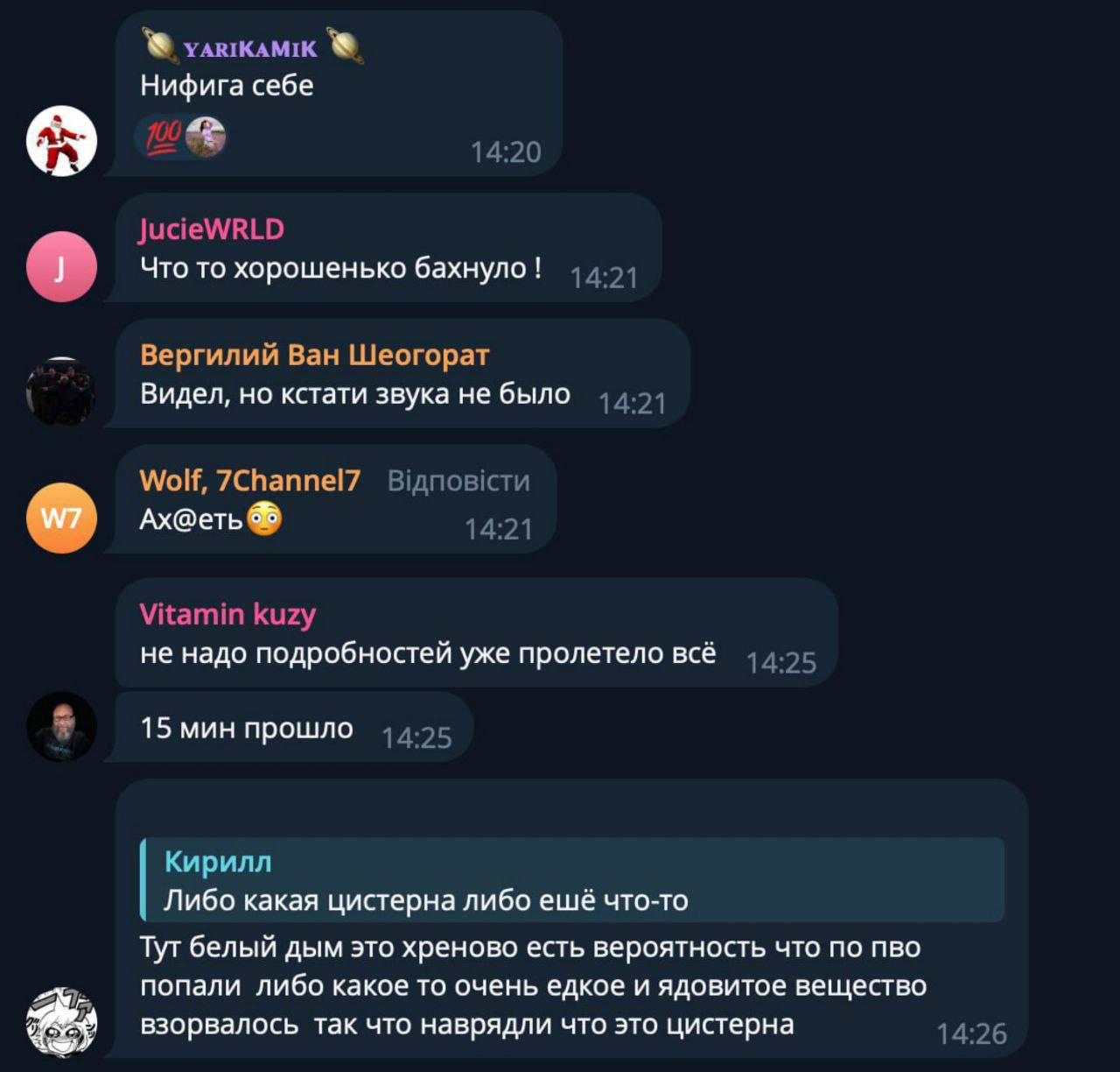Местные источники сообщают, что дым затмил улицы города, и интенсивность задымления не спадает. Ожидается, что причиной этого явления стало повреждение одного из объектов, расположенных рядом с химкомбинатом, возможно, склада с боеприпасами или другими военными материалами. В связи с этим возникли предположения о возможном ракетном ударе по этим объектам.