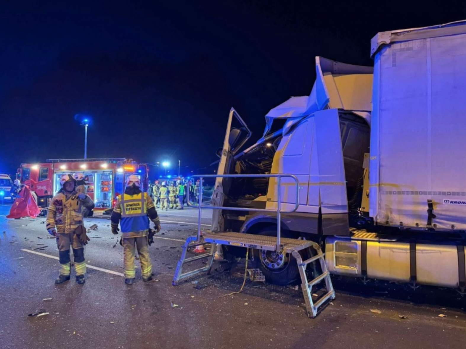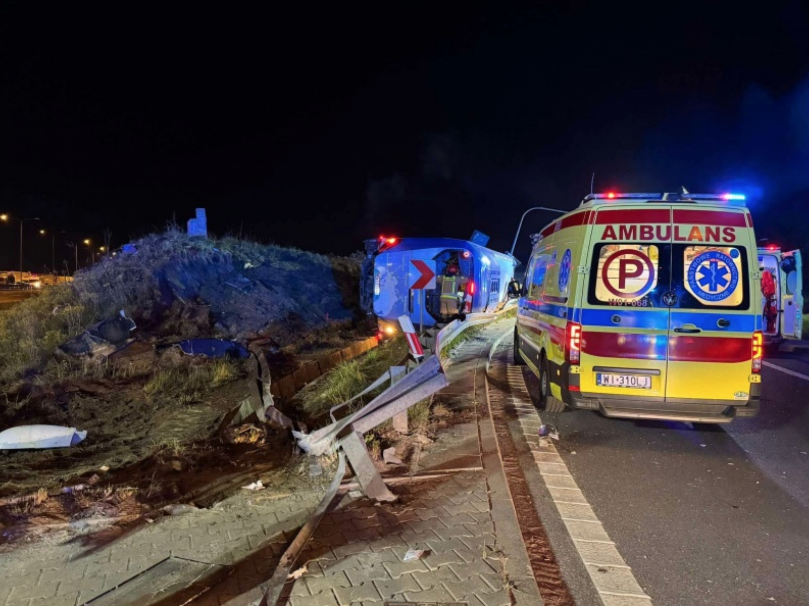 По данным СМИ, сначала автобус междугороднего сообщения, перевозивший 26 человек, среди которых были граждане Украины и Беларуси, перевернулся на бок на съезде с S2 на S7 возле Пулавской развязки после того, как наехал на энергетический барьер.