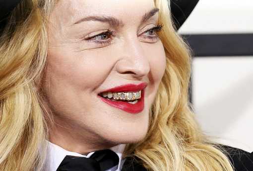 Свой брючный костюм от Ralph Lauren Мадонна дополнила такими спорными и гротескными деталями, как трость, шляпа и сияющие перчатки на руках. Более того, сверкали не только руки, но и зубы звезды: певица явилась на церемонию в своих любимых золотых накладках для челюстей. Черный цвет костюма сильно старил поп-диву – кто-то из ее поклонников даже язвительно заметил, что певица в таком виде напоминает ведьму с золотыми зубами.