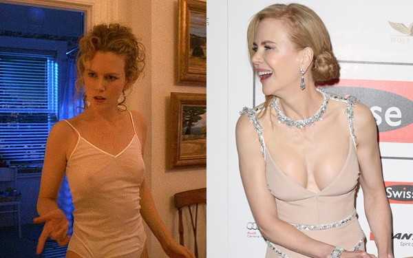 На благотворительный бал Celebrate Life Ball австралийская кинодива Николь Кидман блистала перед фотографами в платье Prada телесного цвета с очень глубоким декольте. Ее бюст стал намного пышнее, чем раньше.