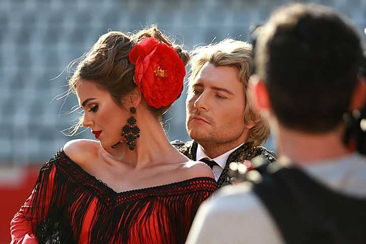 За время съемок, которые проходили на улицах Барселоны, Николай Басков сменил множество разнообразных пиджаков, однако самым эффектным костюмом певца стал наряд матадора.