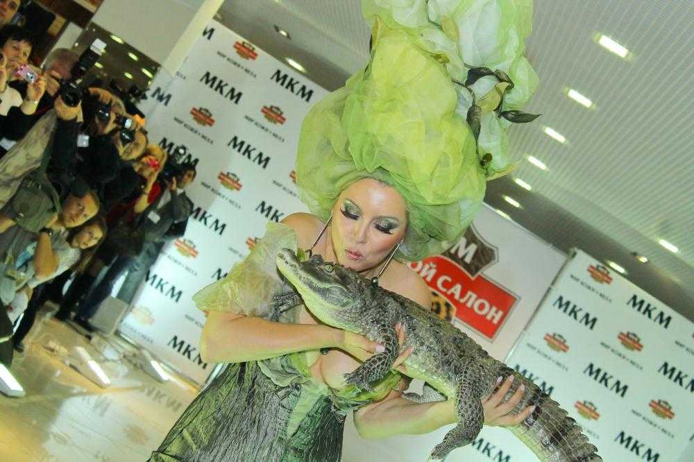 Чуть ранее на дефиле, которое она продюсировала для известной марки мехов, она вместо крокодиловой сумочки вышла с живым крокодилом. И публично поцеловала рептилию. Крокодил сучил ножками и махал хвостом, и все присутствующие замерли в ожидании, когда же он укусит бесстрашную Королеву эпатажа, но к счастью, никто не заметил трехслойного прозрачного скотча, обмотавшего пасть хищника. Мало кто знал, кроме Лены, об одной мышечной особенности крокодилов – мышцы на зажим у него работают мощные, а на разжим - слабенькие, поэтому провокаторше ничто не угрожало. А еще ранее, на другом, тоже спродюсированном ею модном показе, после дефилировавшей Волочковой, она вывела за руку на подиум, в точно таком же платье как и на Насте, обезьяну.