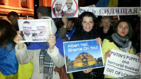 Среди сотен пикетирующих были живущие в Лондоне россияне, а также активисты Лондонского Евромайдана – представители украинской диаспоры.