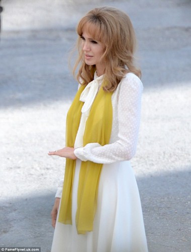 Анджелина Джоли и ее супруг Брэд Питт сейчас работают над совместным фильмом "У моря". Журналистам удалось побывать на съемочной площадке и понаблюдать за тем, как создается история любви знаменитых актеров. Анджелина примерила необычный образ – актриса была в белом легком платье, которое украсил шелковый шарф горчичного цвета. Ее волосы стали значительно светлее, а прическа в стиле ретро дополнила образ.