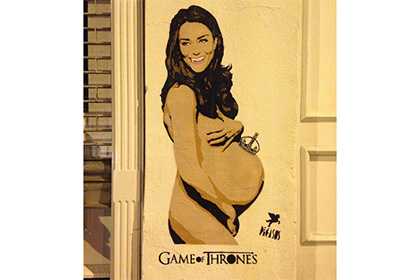 На стене здания художественной галереи Faith Inc в Лондоне появилось граффити, на котором запечатлена обнаженная герцогиня Кембриджская Кейт Миддлтон. Под работой стоит подпись «Игра престолов» — такое название носит популярный американский телесериал. Уличный рисунок принадлежит 29-летнему американскому художнику Пегасу (Pegasus), сообщает британская газета Metro.