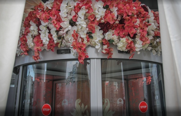 Как сообщал корреспондент ТСН, в 14.00 вход на территорию комплекса закрыли, подойти к зданию было просто невозможно. Интересно, что перед центральным входом установили трехметровую конструкцию, чтобы никто не смог сфотографировать гостей vip-свадьбы.