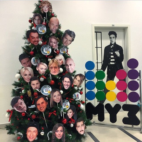Известный российский музыкальный продюсер Яна Рудковская поделилась с поклонниками в Сети фото, на котором нвогодняя елка наряжена фотографиями известных российских исполнителей.