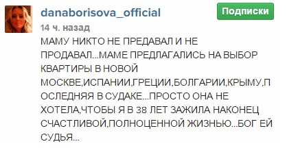 После того, как в СМИ появилась информация о том, что 38-летняя Борисова выгнала мать из квартиры, в которой она прописана, и отказалась пускать ее обратно, телеведущая решила расставить все точки над «і».