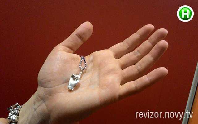 На съемке пост-шоу «Страсти по Ревизору» Анна Жижа похвасталась новым аксессуаром. Недавно Аня сделала подвеску в форме логотипа «Ревизора». Крохотная рука в перчатке с поднятым указательным пальцем теперь всегда при ней.
