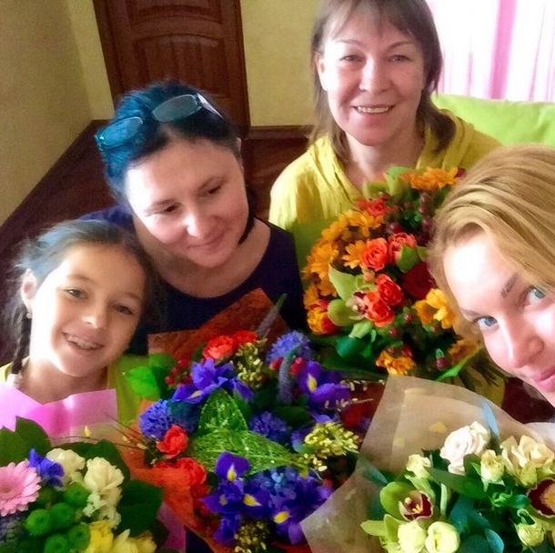 «Приятное начало дня. Цветочный сюрприз от Аришиного папы Игоря», - написала под фотографией с цветами Анастасия Волочкова.