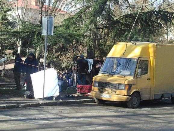 На фото видно, что съемки проходили в центре Симферополя, на набережной реки Салгир.