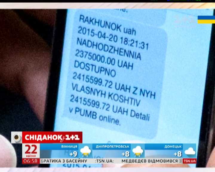 На экране мобильного одного из нардепов банковское уведомление о поступлении на счет более 2 миллионов гривен. В комментариях под фотографией - возмущение и шутки.