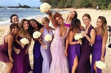 Певица Рианна оказалась в центре внимания, приехав в эффектном платье на свадьбу своей подруги и по совместительству ассистентки Дженнифер Росалес.