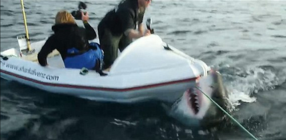 Огромный хищник настолько расшатал лодку, что Кур и Касагранд чуть не выпали из него. К счастью, через некоторое время акула уплыла, и исследователи успели перебраться в лодку.