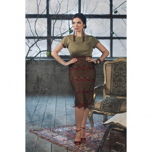 Для первой коллекции украинская звезда выбрала бежевые оттенки. Надежда создала элегантные футболки, украшенные стихами певицы, гипюровые юбки, а также обувь на танкетках и каблуках.
