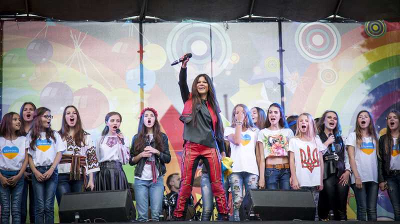 Вчера, 16 июня певица Руслана презентовала гимн Карпатам, который на сцене в Буковеле выполнила с участием двух детских коллективов – воспитанников киевской школы DreamSchool и StarTeam с Ивано-Франковска.