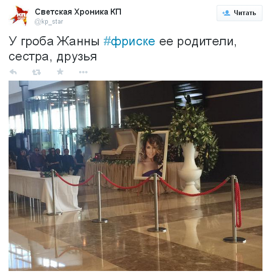 Как сообщалось, Жанна Фриске умерла в возрасте 40 лет 15 июня после долгой борьбы с опухолью мозга. Как признался отец певицы, Фриске последние три месяца перед смертью находилась в коме. Родные певицы уже назвали место и день похорон артистки.