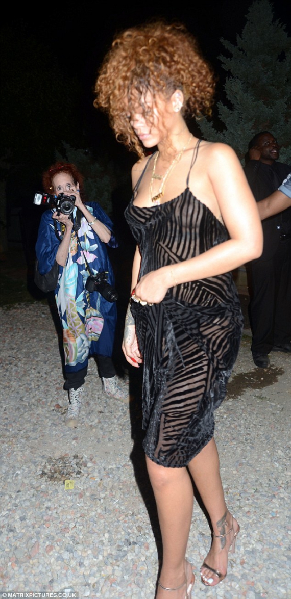 Певица Рианна пришла на вечеринку в ночной клуб в прозрачном платье, под которым не было белья.